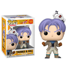 This Dragon Ball GT Trunks & Gill Funko Pop! Vinyl Figure #1630 measures approximately 5-inches tall and comes packaged in a window display box.