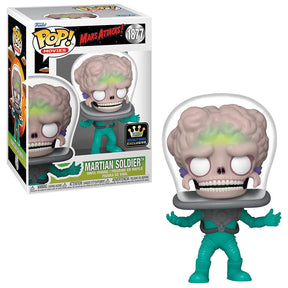 The Funko POP! Mars Attack Martian Soldier 1877 features one of the iconic, extraterrestrial soldiers from the *Mars Attacks!* franchise.