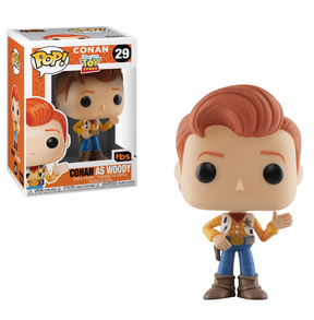 Funko POP! TV Conan O'Brien TBS Toy Story Vinyl Figure is a collectible item that features Conan O'Brien stylized as Woody, the iconic cowboy character from Pixar's "Toy Story."
